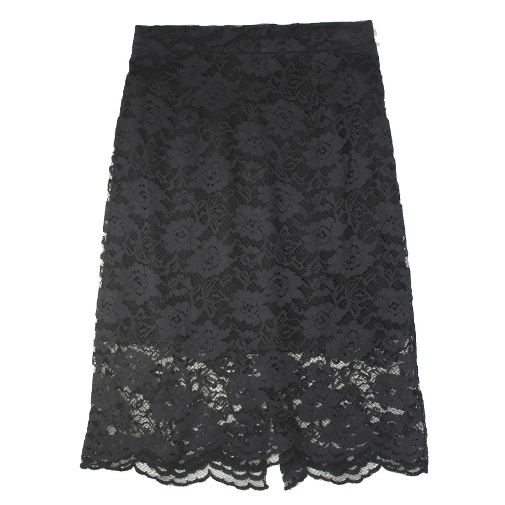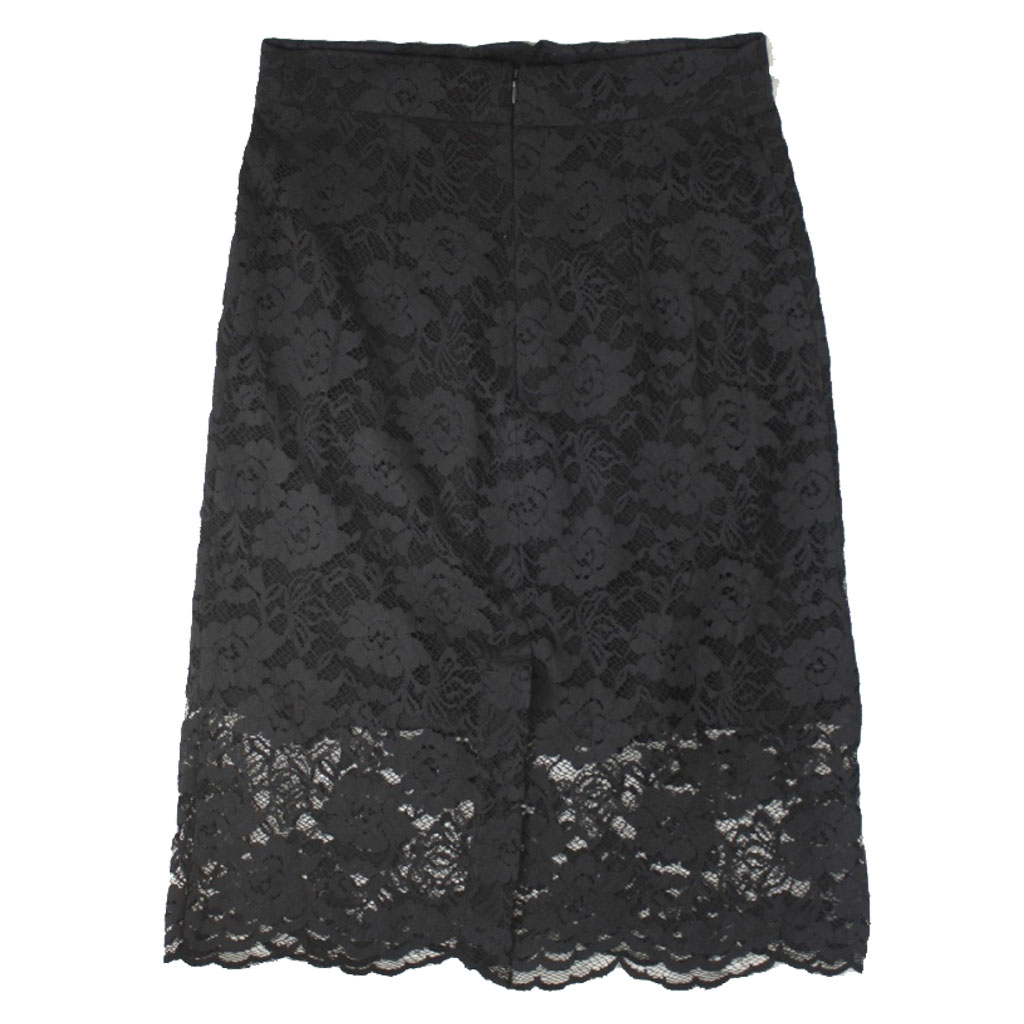 Black macrame lace pencil skirt with silk lining.