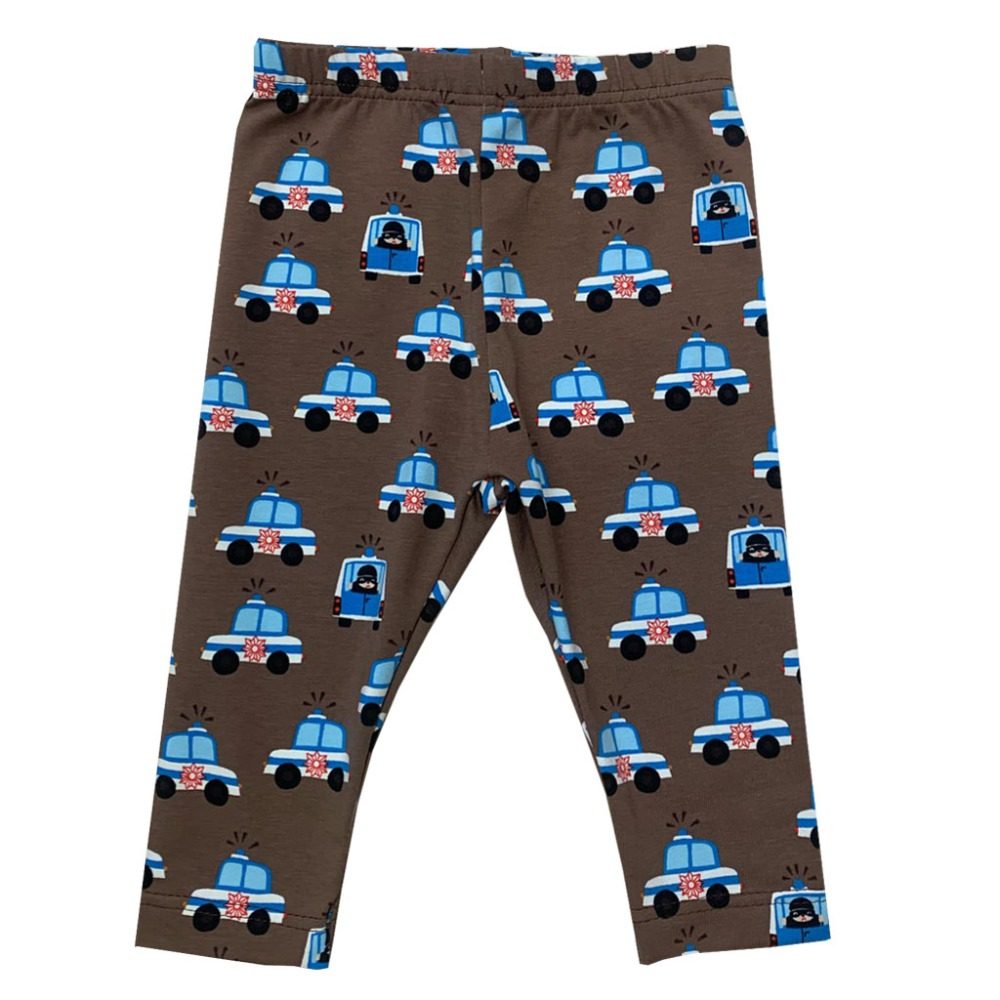 Brown police car-printed leggings. These are super cute for your little boy or girl. Match it with our sweatshirts so your child will be super stylish. Designed and made in Finland.