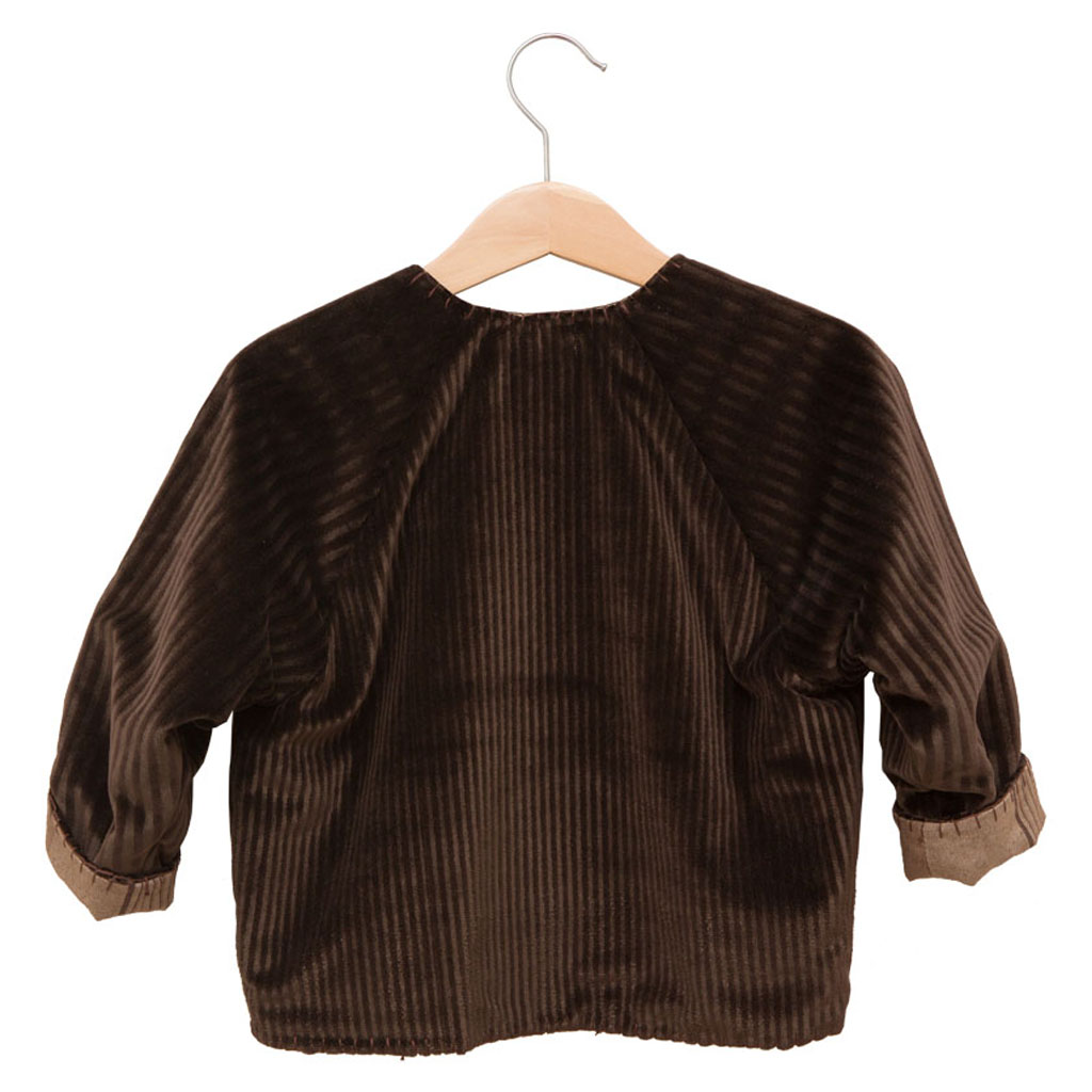 Brown velvet long sleeved coat with cotton lining.