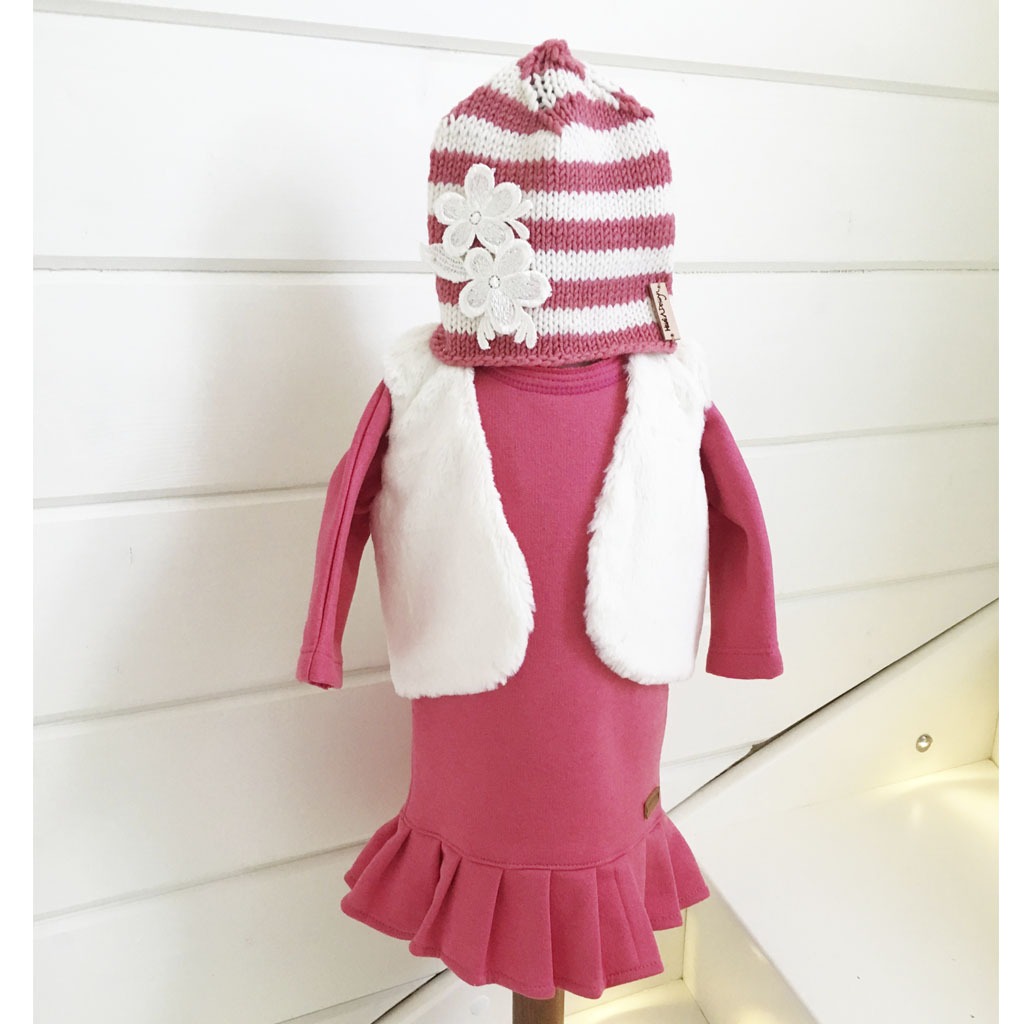 Super soft fuchsia cotton jersey dress. Closing on the shoulder with automatics. Designed and made in Finland.