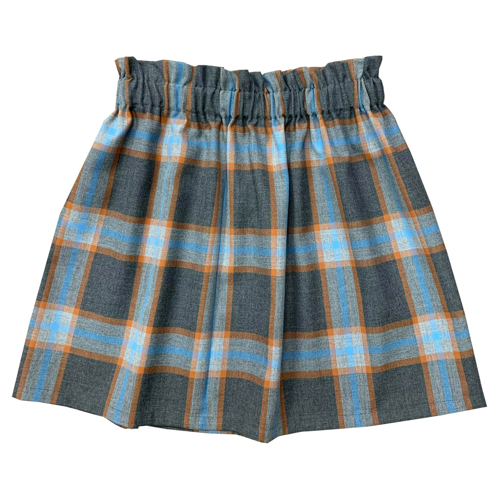 Grey and light blue tartan skirt.  Match it with our logo t-shirts. Elastic on the waist.