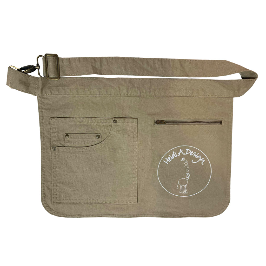This super cool apron is designed to be worn on the hip for handy pocket access. An adjustable self-fabric waistband reaches around the waist and fastens together with an antique brass carabiner and D-ring. Really handy for gardening, taking your dog out, for hairdressers, nurses, kindergarten teachers.