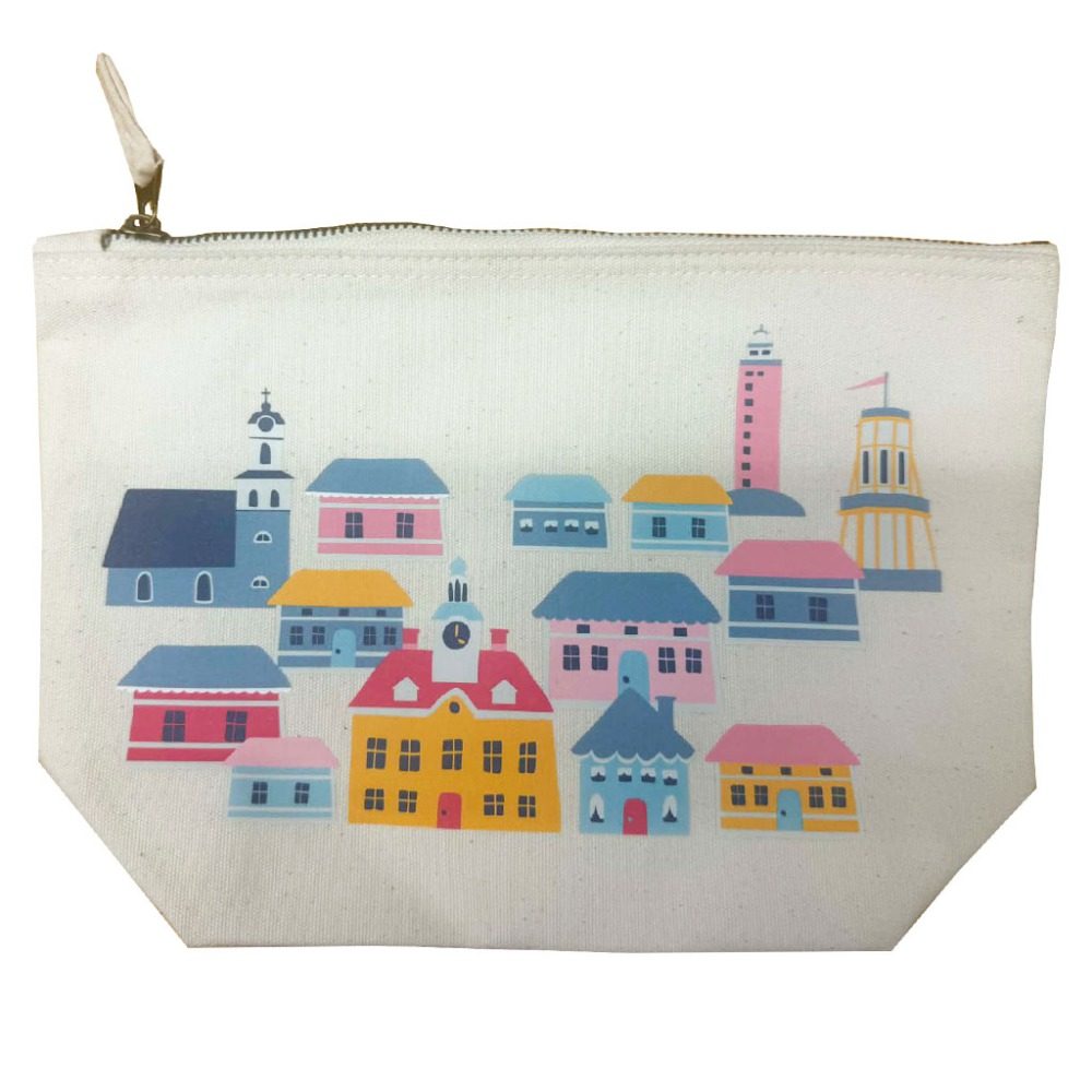 Natural white pouch with Old Rauma houses, medium