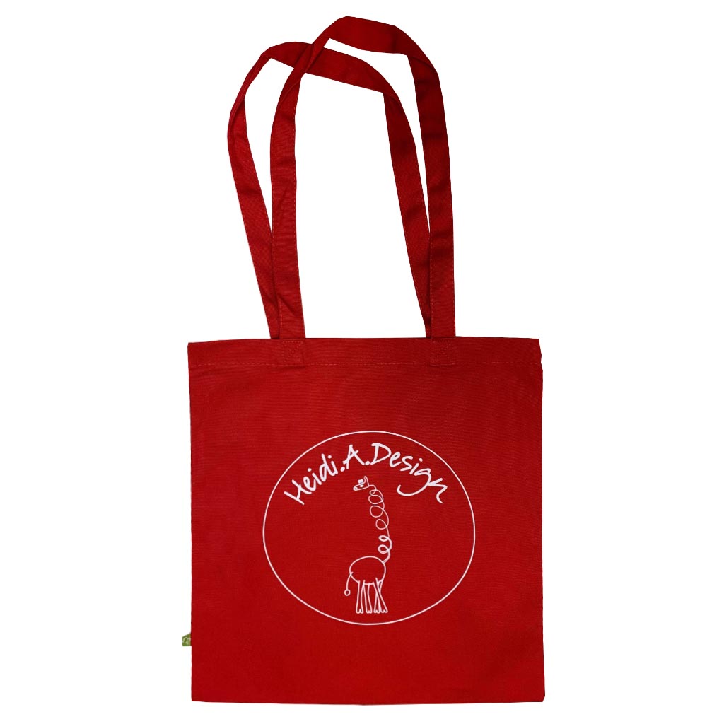 Red canvas logo bag with white print. Size is 38cm*42cm plus the handles. Good to carry on the shoulder.