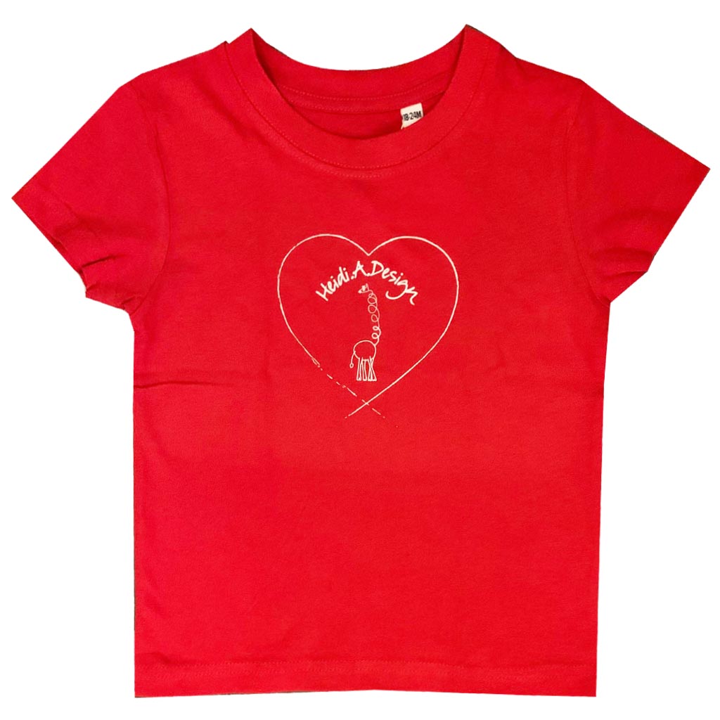 Super soft red cotton t- shirt with heart logo.