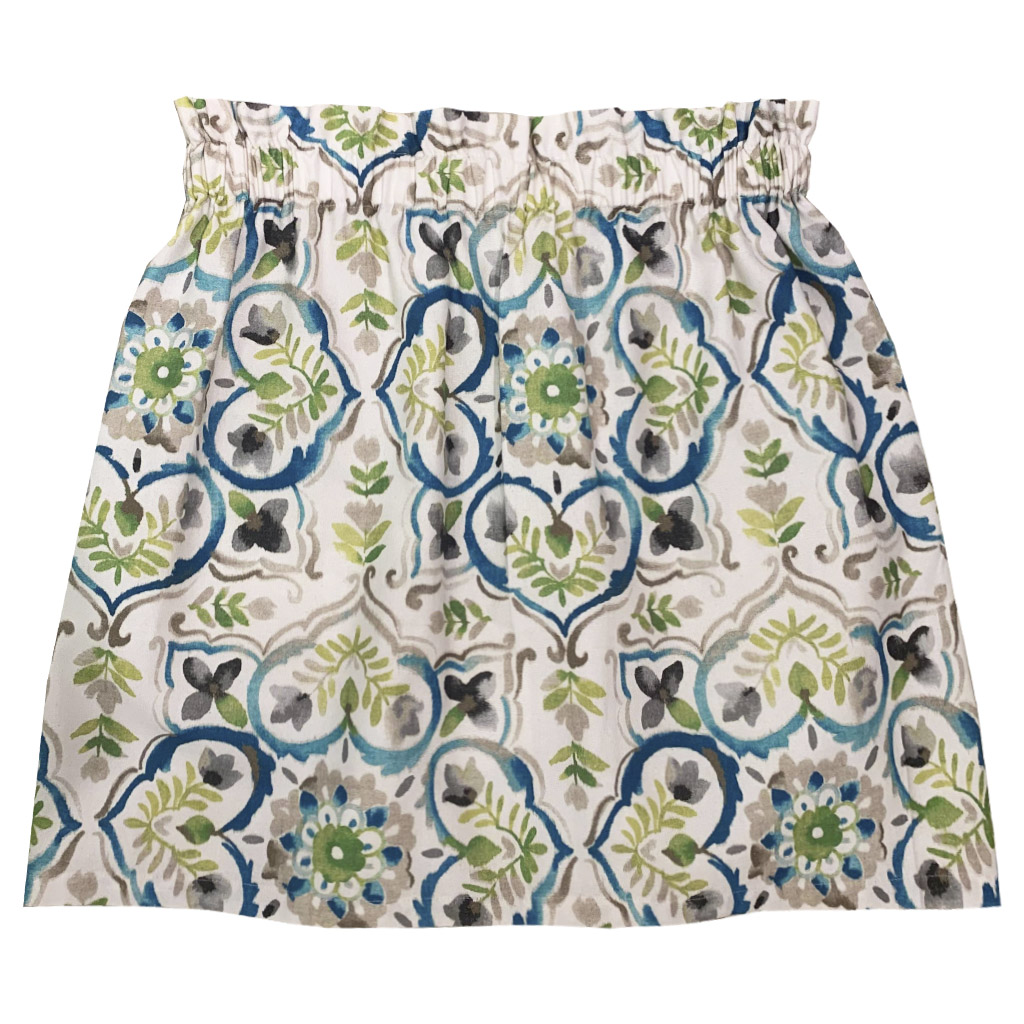 Turquoise flower-printed skirt for women.  Match it with our logo t-shirts. Elastic on the waist.
