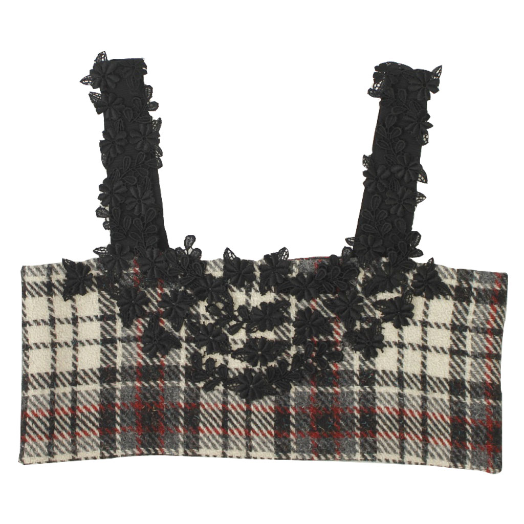 Scottish wool top with black macrame details and wide shoulder straps. Soft silk lining. Wear it with black pencil skirt or ostrich skirt.