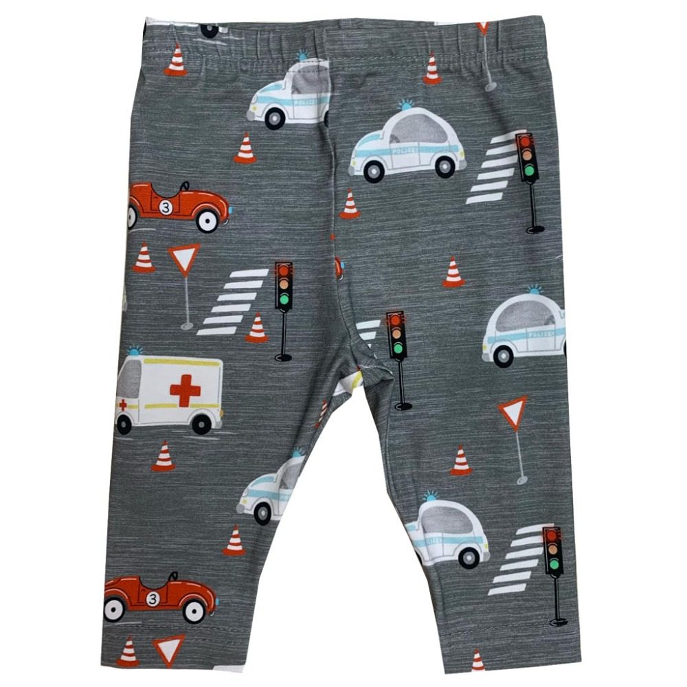Harmaat ambulanssi-kuviolliset leggingsit. Nämä sopivat hyvin pienelle pojalle tai tytölle. Voit yhdistää asuun samansävyisen collegen tai t-paidan.