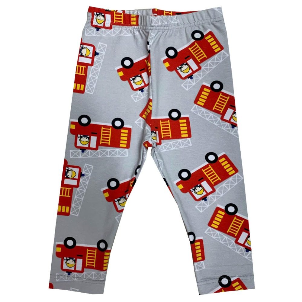 Harmaat paloauto-kuviolliset leggingsit.