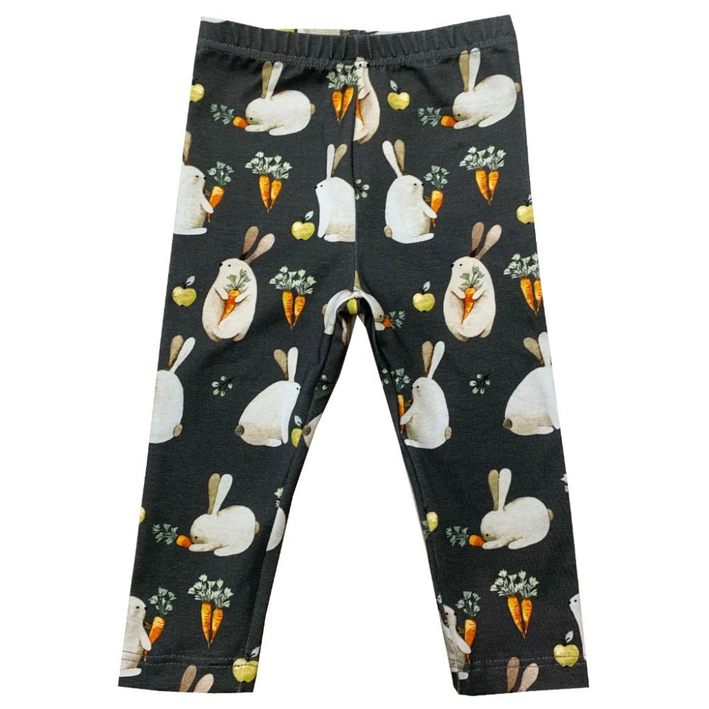 Harmaat pupu-kuviolliset leggingsit. Nämä sopivat hyvin pienelle pojalle tai tytölle. Voit yhdistää asuun samansävyisen collegen tai t-paidan.